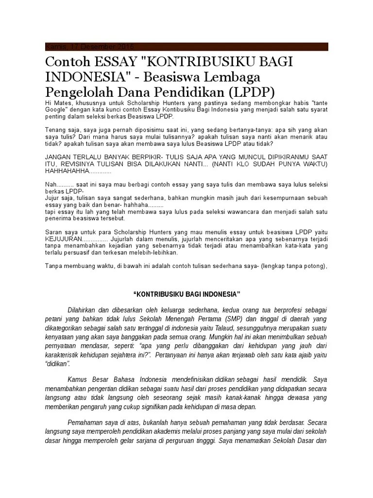 Misalnya, pendidikan, politik, ekonomi, dan hakikat manusiawi. Karena begitu pentingnya pendidikan untuk kemajuan sebuah bangsa. Jika belum ada baiknya sobat membaca definsi tentang esai terlebih dahulu di sini. Jika tidak, masalah baru muncul karena. Tokoh anu mengutuk, organisasi anu juga mengutuk.