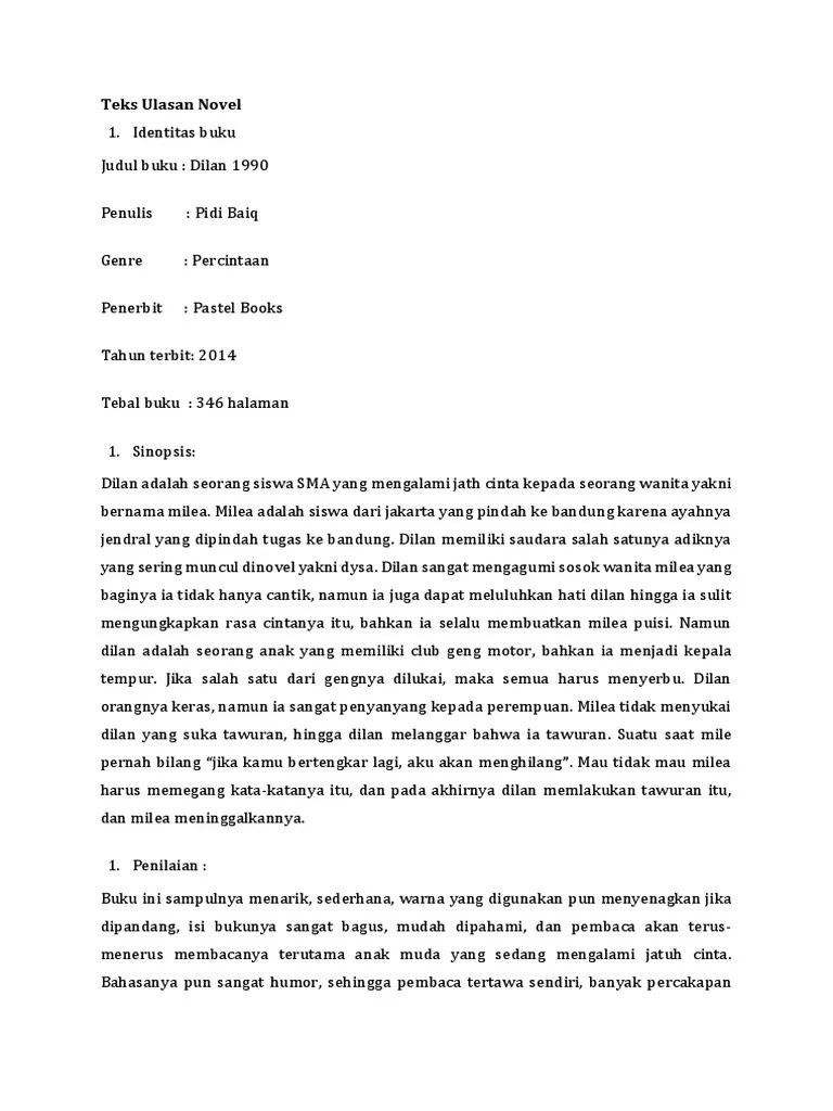 Jika iya, maka kamu sudah berada di blog yang tepat. Film ini sukses membuat para penonton terbawa perasaan, terutama para wanita. Contoh teks ulasan dilan 1990. Jangan pernah baca novel berseri dari seri ketiga! 135 cisaranten wetan ujungberung bandung. Film dilan 1990 hanya merupakan pembuka dari beberapa sequelnya, akan ada beberapa seri film dilan selanjutnya. 2 (dua) nama anggota : dilan 1990 merupakan film romansa indonesia tahun 2018. Smpn 1 kota serang teks ulasan novel dilan dan teks ulasan album lagu •» soal dan materi tentang stuktur. Dalam teks ulasan tersebut berisi tentang penilaian terhadap sebuah karya sastra, dari sudut pandangan penulis. Film dilan 1990 merupakan sebuah film yang sangat identik dengan kehidupan remaja pada saat itu. Cara penulisan teks ulasan haruslah disusun sesuai dengan kaidah penulisan kebahasaannya. teks ulasan novel dilan beserta strukturnya berbagai teks penting.