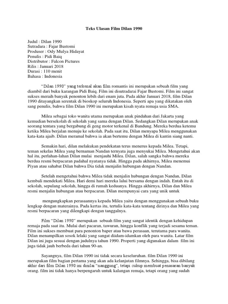 Contoh teks ulasan film dilan 1990. Ody mulya hidayat penulis : Novel dan video film dilan 1990`. Oleh sebab itu, dilan 1990 masih menyimpan misteri di akhir cerita sehingga terkesan "nanggung". Dia adalah dilanku tahun 1991.