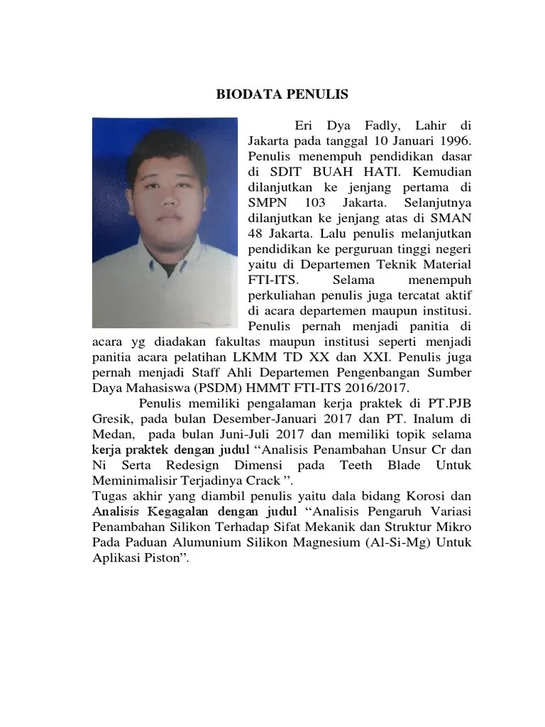 Biografi penulis adalah teks yang berisikan informasi tentang kehidupan pribadi maupun latar belakang dari seorang tokoh penulis secara lengkap.